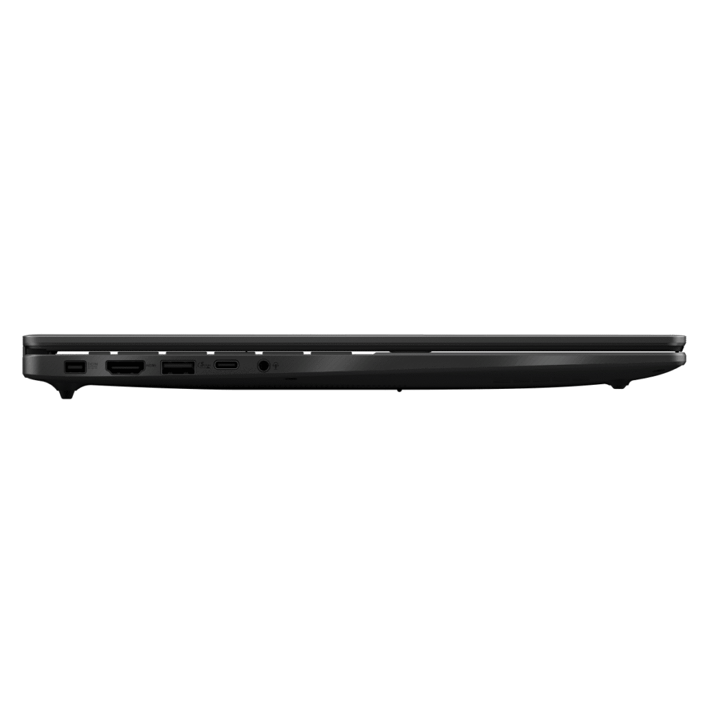 The ASUS V16 follows a conservative design approach with a plain black chassis that won’t draw attention in professional or educational settings. There’s no aggressive gamer aesthetic here – no RGB lightbars, no angular styling, just a straightforward laptop design. Whether that’s boring or refreshingly subtle depends on your perspective.